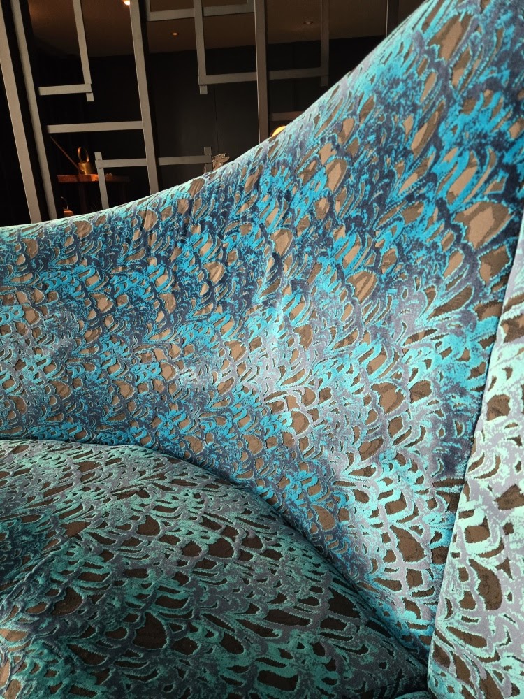 コンラッド東京の28階に位置する「チャイナブルー」。 店内に入ると、店名の通りブルーを基調とした高い天井と、浜離宮恩賜庭園を一望できるパノラマビューが広がります。