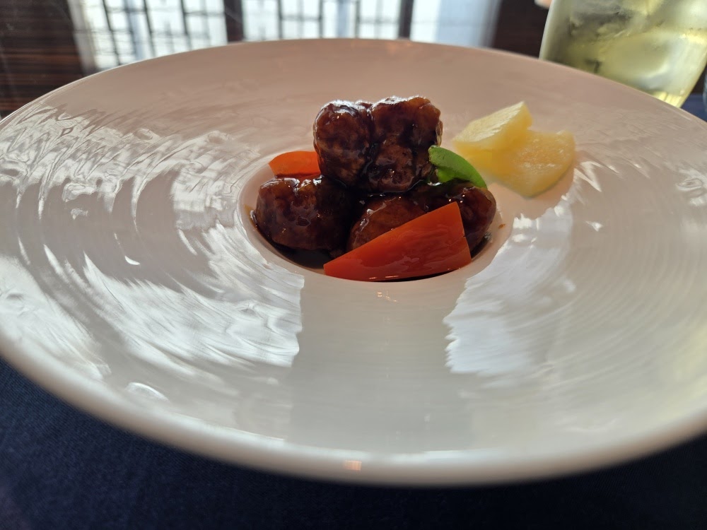 メインは沖縄のアグー豚を使った酢豚。 ビジュアルは美しく、野菜もシャキシャキで食感は楽しいです。 ただ、肝心のお肉の味は「少し良い店なら食べられるかな?」という印象。期待値が高すぎたのか、特徴的な驚きはありませんでした。