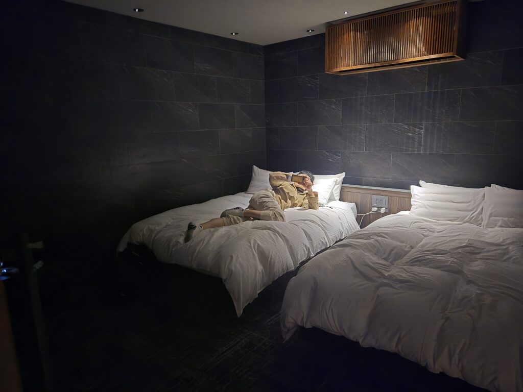 All Inclusiveなので、ワインも日本酒もご当地のみかんジュースとか、いろいろすべて飲み放題です。ちょっとしたスナックもあります。(これだけで元取れちゃう気がします。本当にコスパいい)